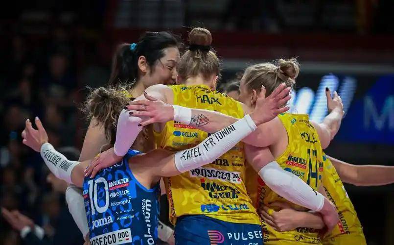 想想上赛季欧冠决赛,科内利亚诺3-0横扫斯坎迪奇那场球,朱婷拿了14分,扣球成功率高达71%。 那场比赛结束后,科内利亚诺实现了赛季全满贯——世俱杯、意大利超级杯、意大利杯、意甲联赛和欧冠冠军全拿了个遍。